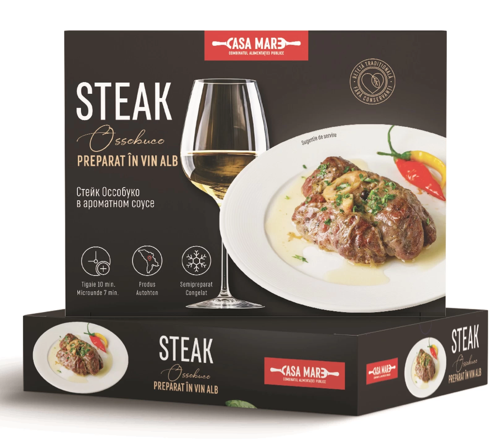 Ingrediente: rasol de vită cu os, făină de grâu, ceapă, ulei vegetal, vin alb sec, condimente, aditivi. Alergeni: sirop de glucoză, făină de grâu