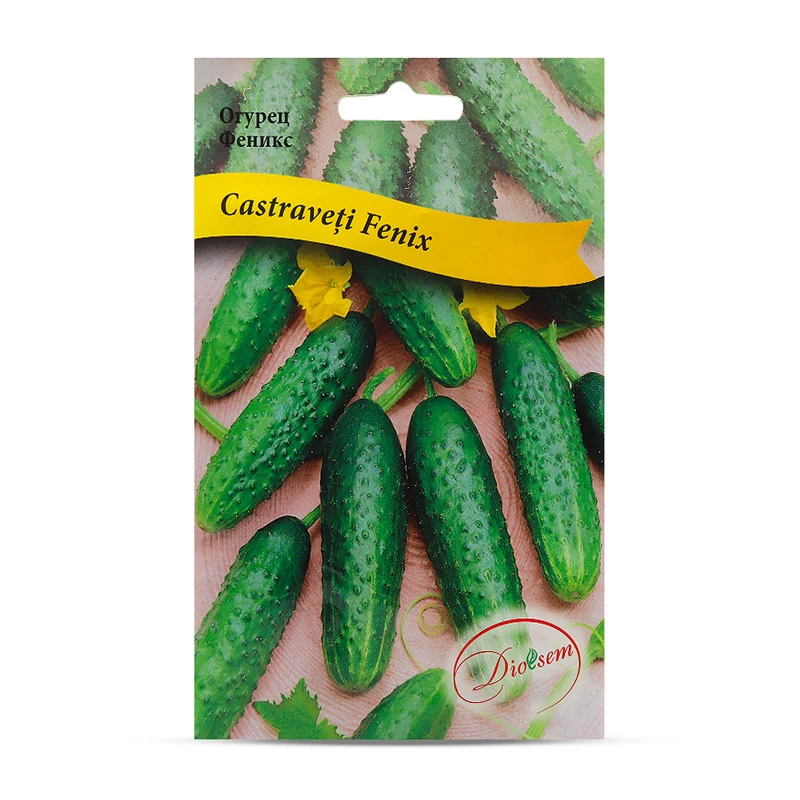 Castraveți "Fenix" - soi mediu, polenizat de albini, cu o perioadă de la germinare până la fructificare de 46-55 de zile. Planta este de tip indeterminat, de mărime medi, cu o înflorire de tip mixt. Fructele de lungimea 10-15cm cu nodozități, cu masa de 100-150g. Este de culoare verde închis, cu dungi lungitudinale albe scurte și cu protuberențe mici. Cu calități gustative excelente. Își păstrează calitățile până la 15 zile în condiții obișnuite.