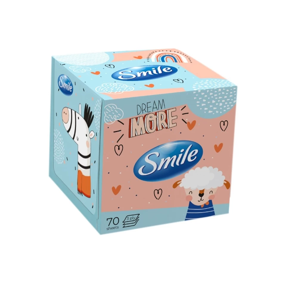 Șervețelele de hârtie cu trei straturi Smile Mix vă vor salva nu numai în timpul unei răceli, ci și în viața de zi cu zi, când trebuie să vă ștergeți mâinile sau fața sau să vă retușați machiajul.