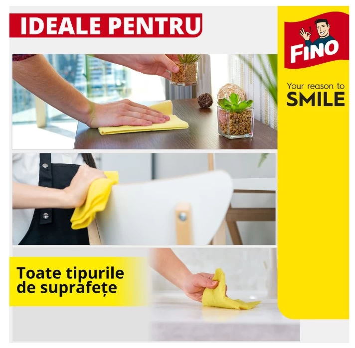 Lavete multifunctionale Fino, 3 bucati/pachet; Sunt foarte absorbante, se pot folosi atat uscate, cat si umede. Sunt ideale pentru curatarea oricarui tip de suprafata precum cele din bucatarie, dulapuri, pahare, mobila. Sunt usor de curatat, pot fi spalate si la masina de spalat la o temperatura de pana la 60°C. Pentru o putere de absobtie mai buna, umeziti putin laveta. Pentru pastrarea in bune conditii, clatiti laveta dupa fiecare utilizare. Ingrediente: vascoza.