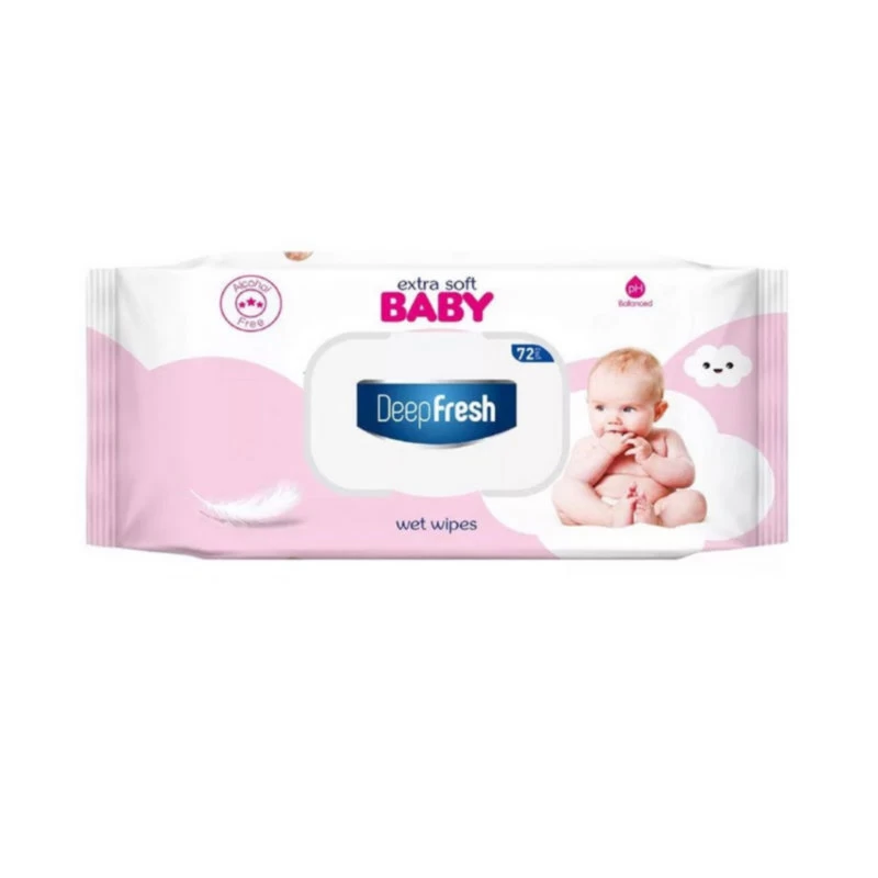 Șervețelele umede DF pentru copii și bebeluși Extra Soft, 72 bucăți, cu capac flip-top, DEEP FRESH asigură o curățare delicată și protecție pentru pielea copilului datorită utilizării fibrelor naturale de bumbac în proporție de 100%. Șervețelele Extra Soft au un pH neutru, ceea ce înseamnă că sunt blânde cu pielea sensibilă a copilului. Nu provoacă iritații și nici roșeață. pH-ul neutru face ca șervețelele să fie sigure pentru utilizarea zilnică chiar și pe cea mai sensibilă piele.