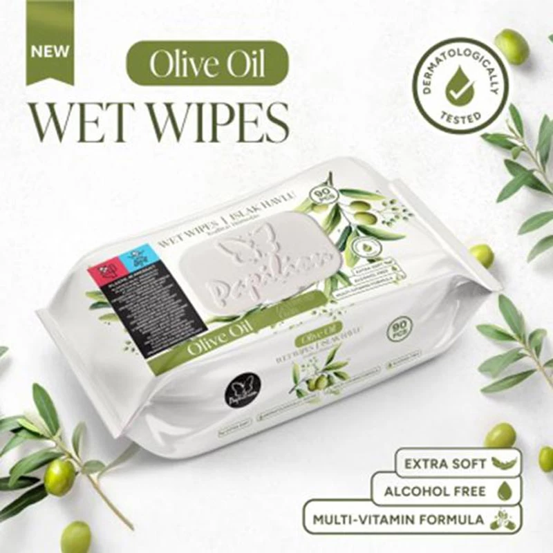 Papilion Șervețele umede mari cu ulei de măsline, 90 bucăți, sunt șervețele umede extrem de moi și de dimensiuni generoase, destinate curățării zilnice și îngrijirii pielii. Formula care conține ulei de măsline ajută la îngrijirea și hidratarea pielii, în timp ce șervețelul curăță delicat. Este ideală pentru întreaga familie, atât acasă, cât și în deplasare.