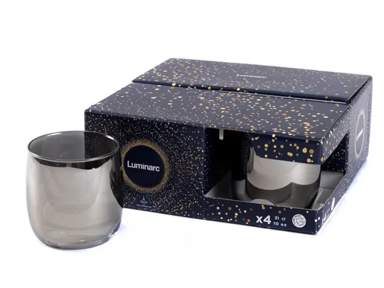 Set din 4 pahare whisky din seria Celeste Shiny Graphit cu o capacitate de 300 ml. Pocalele sunt fabricate din sticlă rezistentă la lovituri. O soluție excelentă pentru utilizarea în baruri, restaurante și acasă. Paharele Celeste Shiny Graphit pot deveni un cadou perfect și o decorare minunată a mesei festive. Pot fi spălate în mașina de spălat vase.