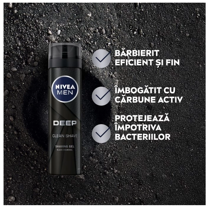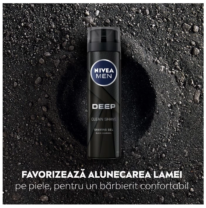 Gelul de ras NIVEA MEN DEEP curata pielea pentru o alunecare eficienta a aparatului de ras, protejand si conferind o senzatie de confort de lunga durata.