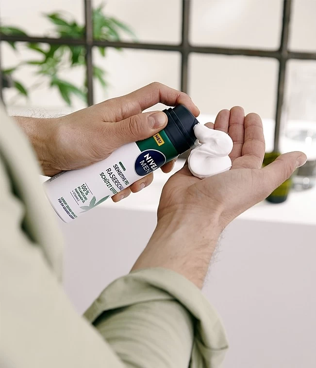 Incearca spuma de ras NIVEA MEN Sensitive PRO cu 100% ulei natural de seminte de canepa si ofera-i pielii tale calmare si ingrijire la fiecare barbierit!