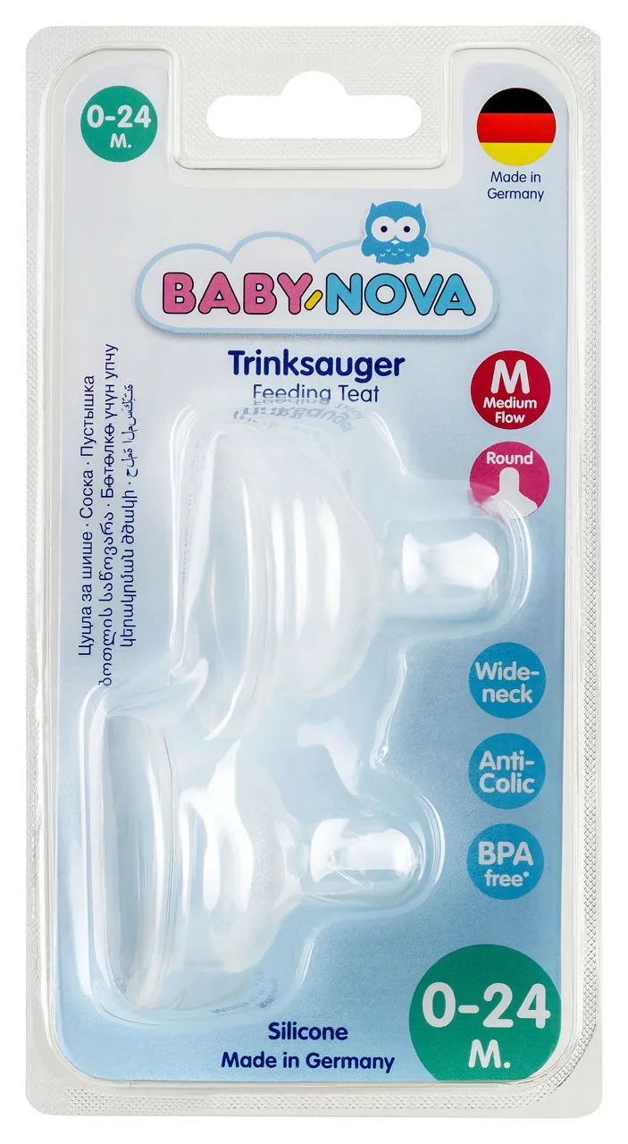 Baby Nova Tetina 0 luni+, cu debit lent, Silicon, fara BPA, 2 buc./blister