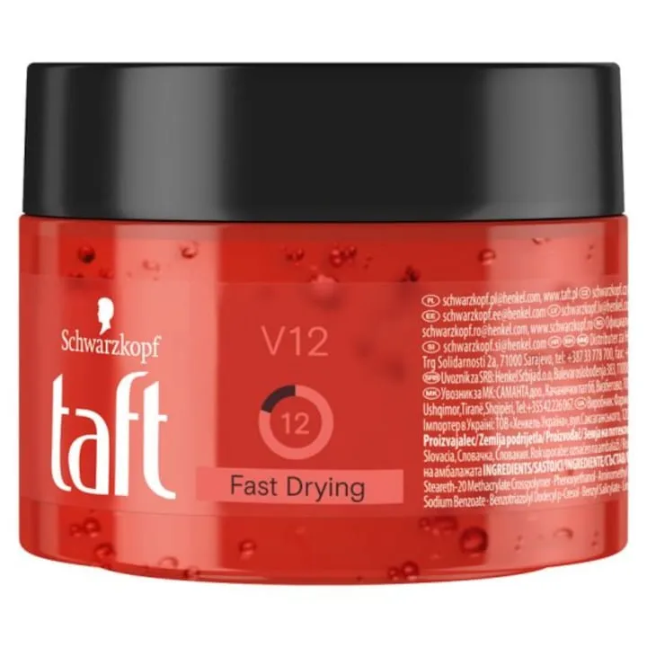 Gelul Taft V12 contine o formula cu uscare rapida.