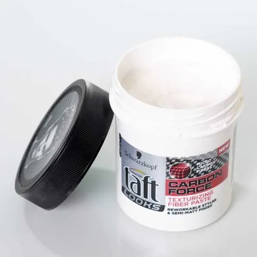 Pasta de fibre texturizante Taft Looks Carbon Force este un produs cât se poate de ușor de folosit. Trebuie doar să freci un bob de pastă în mână și aceasta se va transforma într-o cremă groasă care va "pune" părul la locul potrivit și va stabili direcția dorită. Produsul nu se lipește de păr și nici nu îl încarcă. Nu vă faceți griji, nu va lăsa o placă albă pe păr, ci îi va da o strălucire naturală. Pasta de păr Texturising Hair Paste de la Taft este potrivită atât pentru frizerii experimentați, cât și pentru cei care iubesc coafarea spectaculoasă.