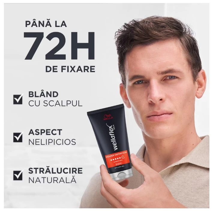 • Wellaflex Power Definition Gel, un gel de styling cu fixare Ultimate pentru barbati;