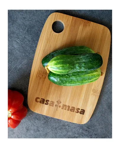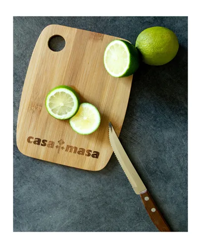 Placa de tocat SIMPLE de la CasaMasa, în formă de dreptunghi rotunjit alungit, este realizată din bambus. Acesta este un material unic, care nu este de fapt lemn, dar placa de tăiere realizată din el este rezistentă, netedă și estetică. Este potrivită pentru tăierea tuturor tipurilor de alimente și, ceea ce este important, se curăță perfect, deoarece aproape că nu absoarbe niciun miros.