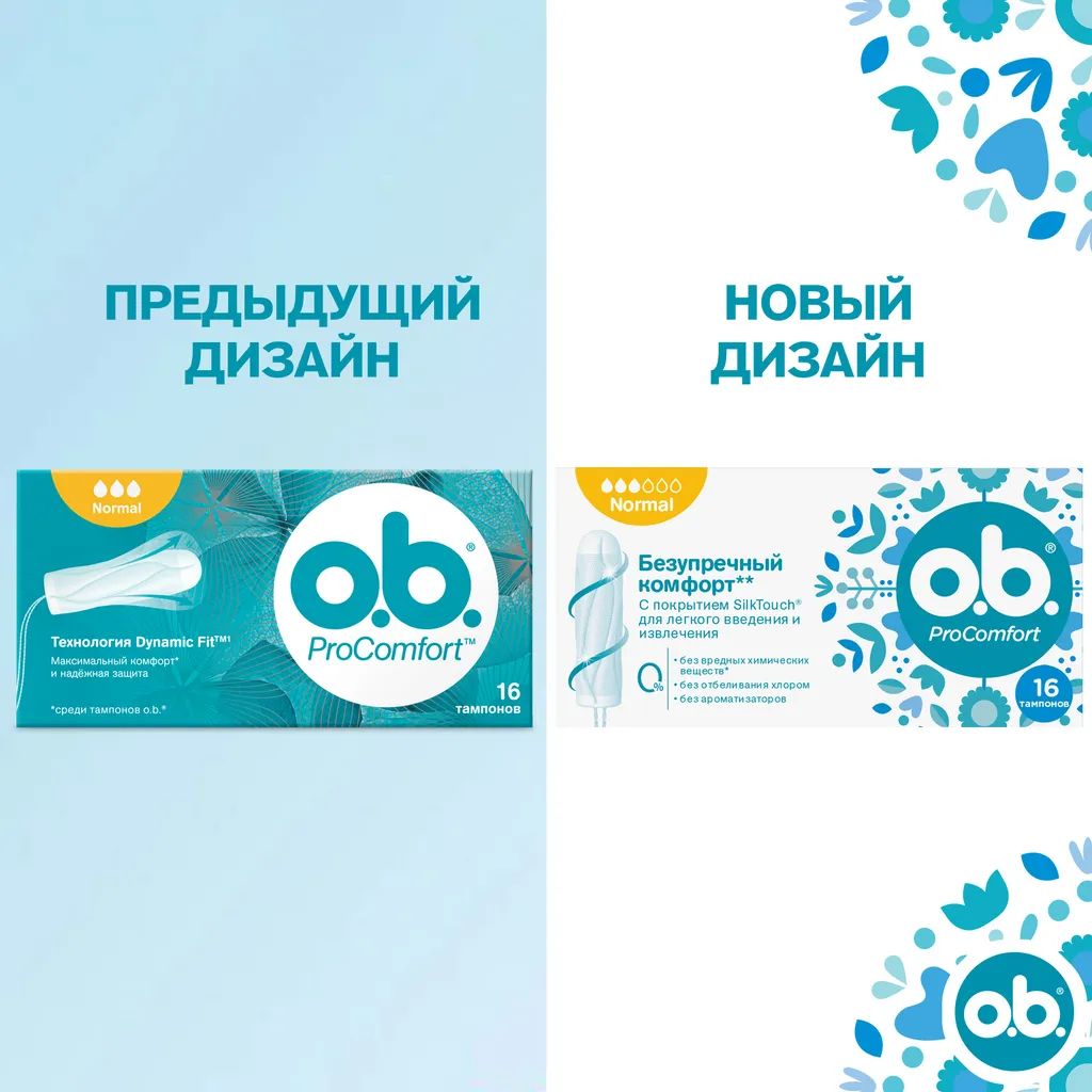 o.b. ProComfort oferă o inserție ușoară și o protecție fiabilă datorită stratului său unic** SilkTouch, a canelurilor speciale și a noii tehnologii, pentru o suprafață a tamponului și mai netedă. O.b. ProComfort este ușor de utilizat în zilele cu scurgeri ușoare până la moderate și pentru cele care abia încep să folosească tampoane.