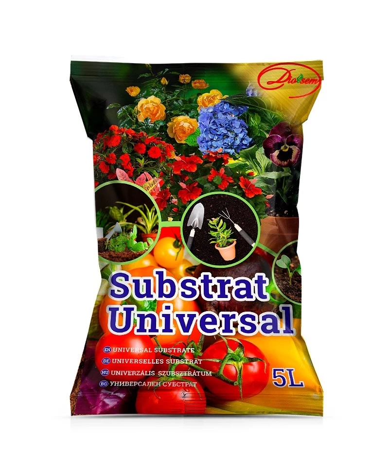 SUBSTRAT DIOLSEM UNIVERSAL (pH 5.5-6.5) este un produs finit pentru utilizare, fabricat în bază de turbă albă de calitate înaltă cu adaos de macro şi micro elemente necesare pentru dezvoltarea plantelor (P₂0, K₂0, MgO, B, Cu, Zn, Fe, Mn). Substratul universal are o concentraţie ridicată de elemente minerale. Aciditatea echilibrată şi adaosul de minerale fac din substratul universal un mediu tropic pentru creşterea rădăcinilor. Capacitatea ridicată de hidroabsorbţie şi alţi parametrii fizici contribue la hidratarea rădăcinilor, alimentarea acestora cu minerale şi microelemente, respectiv contribuie la dezvoltarea întregii plante.