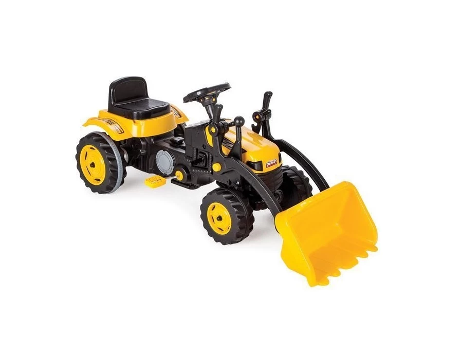 Tractorul-excavator cu pedale Pilsan „Active” (07315) este destinat băieților și fetelor începând cu vârsta de 3 ani. Transmisia cu lanț de pe puntea spate vă va permite să obțineți o deplasare confortabilă și lină, similară cu cea a unei biciclete. Direcția este realizată cu ajutorul unui mecanism patentat. Ghidonul este echipat cu un claxon. Scaunul are o montare unică patentată cu 6 poziții de reglare. Roțile din spate sunt prevăzute cu tampoane de cauciuc. În spate există un sistem de fixare a remorcii (remorca se vinde separat). Greutatea maximă a copilului poate ajunge la 50 kg. Tractorul este echipat cu o cupă controlată în două planuri. Această cupă poate fi utilizată în groapa de nisip, pe plajă și în alte locuri cu sol moale și afânat.