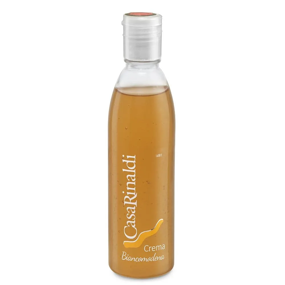 Crema di Balsamico Bianca de la Casa Rinaldi are un gust foarte cremos. Nota de oțet ușor dulce se potrivește foarte bine cu pește, carne, salate și legume.