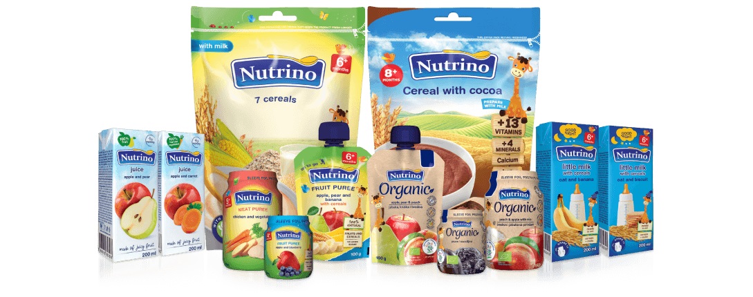 Nutrino предлагает питание для малышей и детей раннего возраста в безопасных и удобных форматах: баночки, мягкие пакеты (pouch), растворимые каши и полезные перекусы. Выбирайте варианты, подходящие возрасту и предпочтениям ребёнка.
