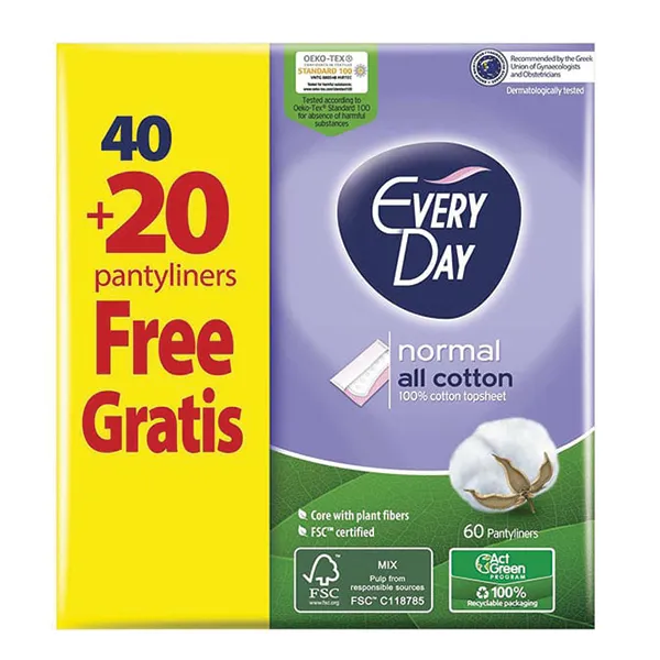 - Everyday Ежедневные гигиенические прокладки All cotton normal 40+20 шт