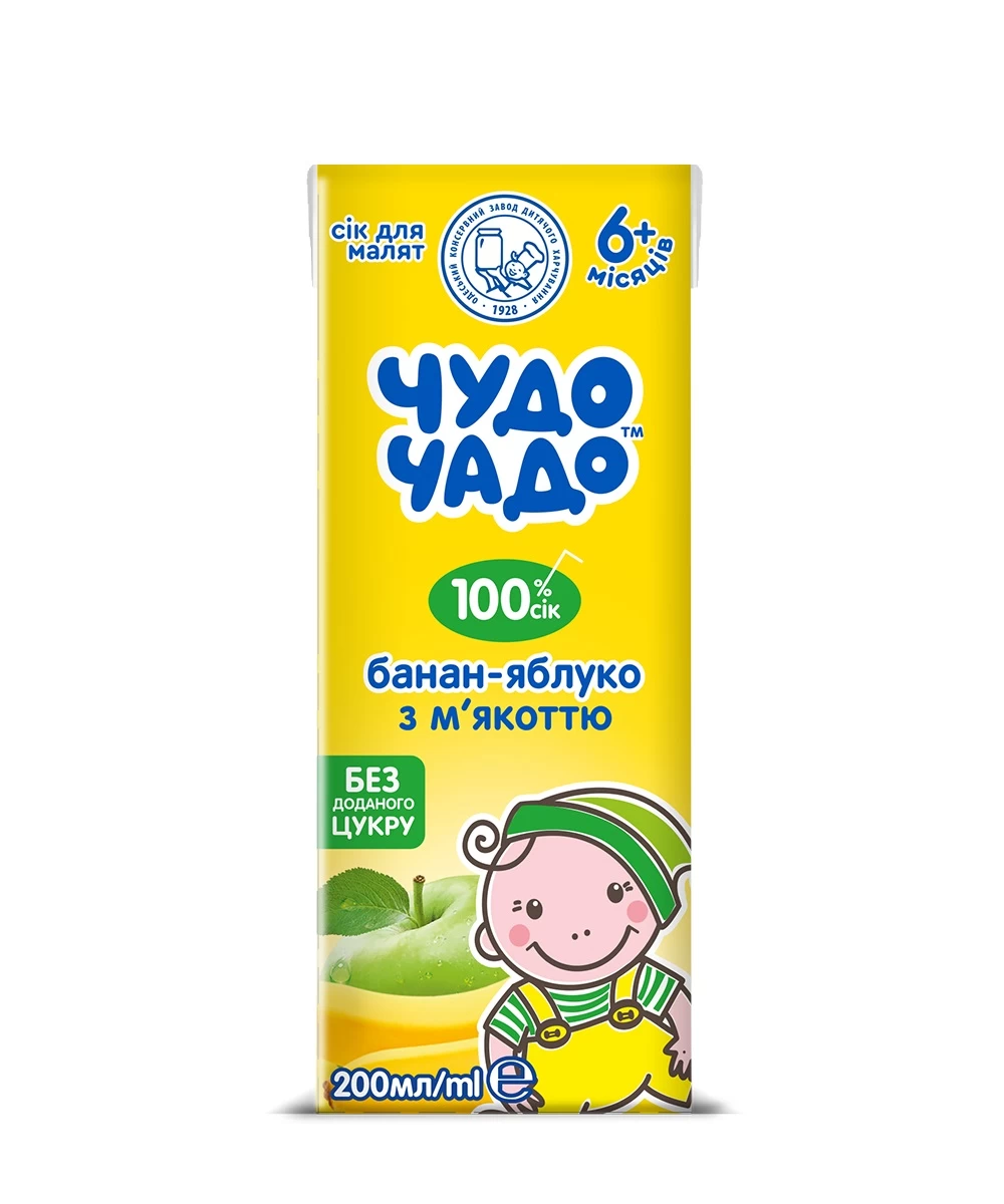 - Сок Чудо Чадо бананово-яблочный с мякотью восстановленный для питания детей раннего возраста стерили