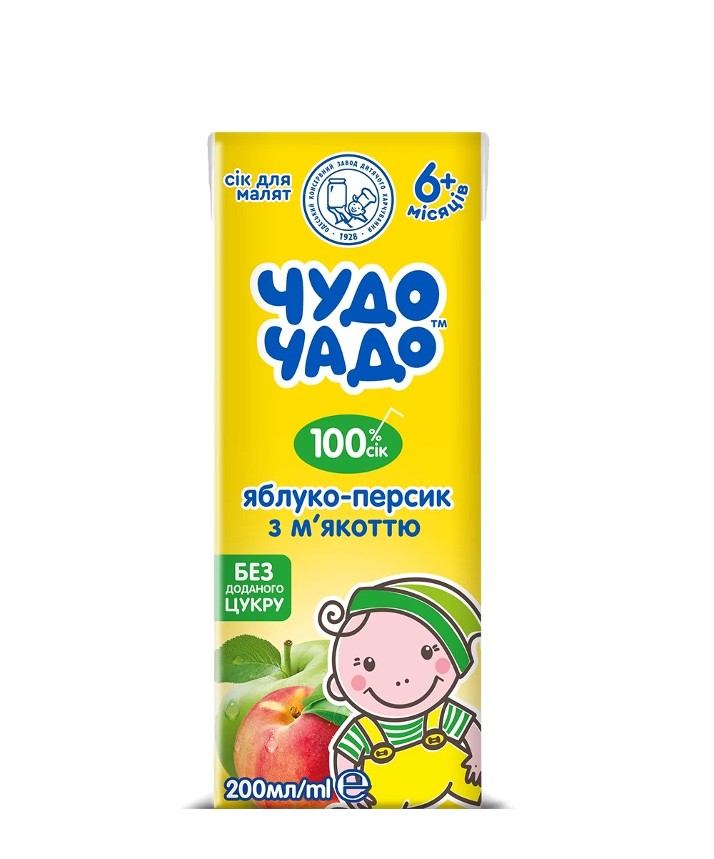 - Сок для детей Чудо чадо от 6 мес без сахара с мякотью Яблоко-персик 200 мл