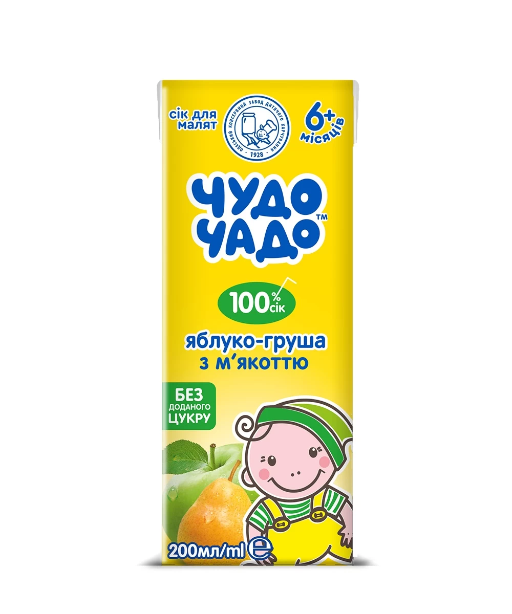 - Сок Чудо Чадо яблочно-грушевый с мякотью восстановленный для питания детей раннего возраста стерили