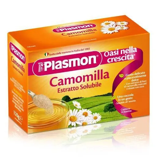 Готовый к применению продукт легко растворяется в воде. Plasmon Chamomile содержит высушенный экстракт цветков ромашки, тщательно дозированный с точным контролем пестицидов. Масса нетто 120 г.