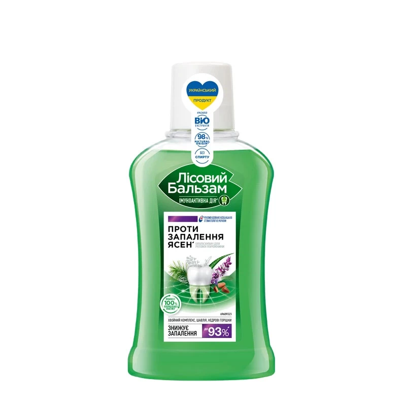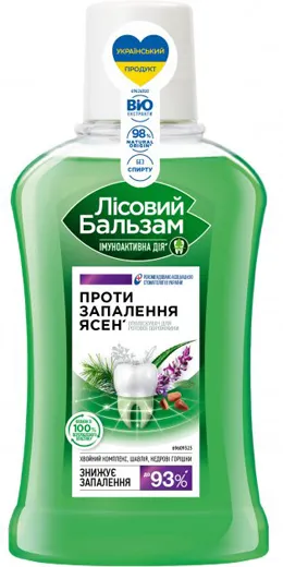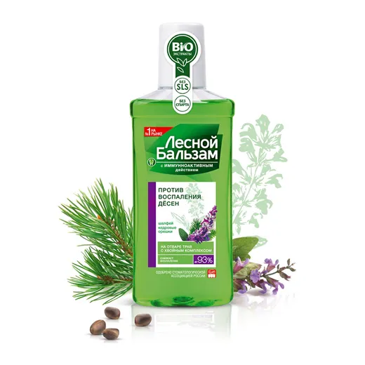 Ополаскиватель Лесной бальзам для десен и зубов разработан на основе сбора из 5-ти целебных трав в сочетании с экстрактами шалфея и алоэ вера.