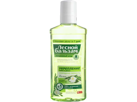 Ополаскиватель для ротовой полости Лесной бальзам Тройной эффект Свежая мята обеспечивает экстра свежее дыхание и рекомендован для ежедневного ухода за зубами и деснами.