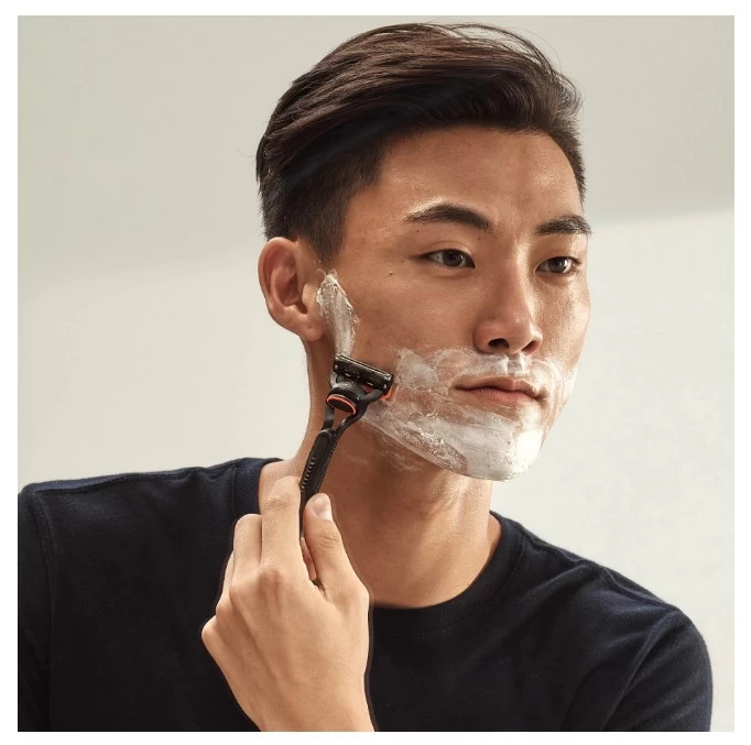 Более гладкое бритье* с бритвой Gillette Fusion 5, оснащенной 5 антифрикционными лезвиями. *По сравнению с Mach 3