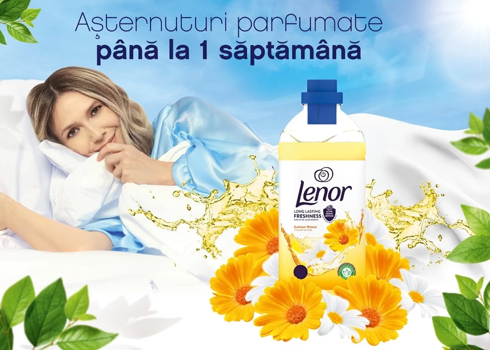 Используйте кондиционер для белья Lenor Summer Breeze вместе с обычным стиральным порошком для свежести белья каждый день.