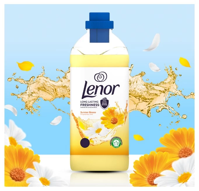 Кондиционер для белья Lenor Summer Breeze Summer Breeze обеспечивает свежий результат даже в холодных и быстрых циклах стирки.