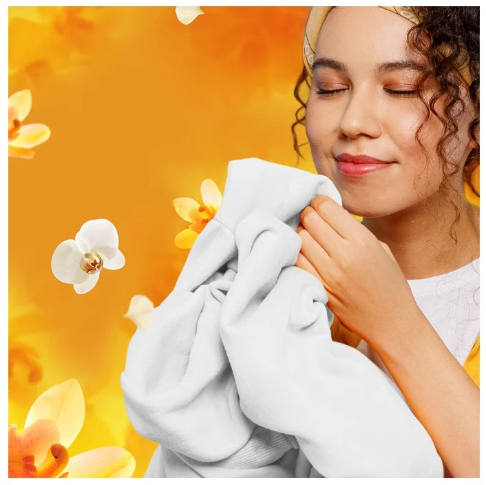 Кондиционер для белья Lenor Gold Orchid & Vanilla (Золотая орхидея и ваниль) обеспечивает аромат, который держится в 3 раза дольше*, чтобы вы могли наслаждаться небольшими моментами расслабления в любое время в течение всего дня благодаря технологии ароматических масел.