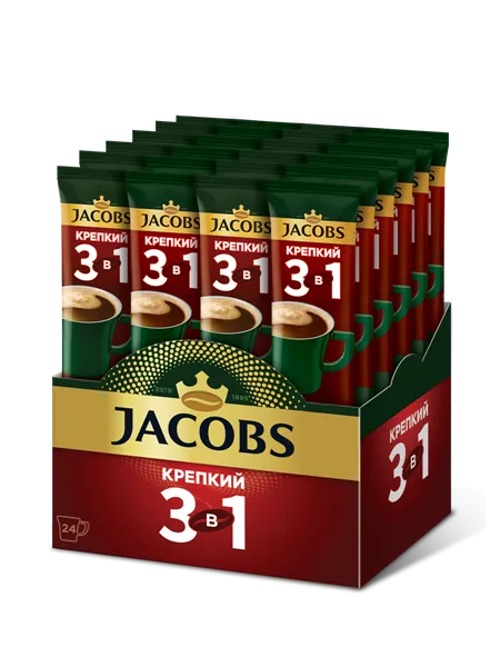Jacobs 3в1 в новом ярком дизайне и с улучшенной рецептурой, которая дарит богатый аромат кофе. Jacobs 3в1 Крепкий обладает насыщенным вкусом кофе и подарит заряд энергии для продуктивного дня.