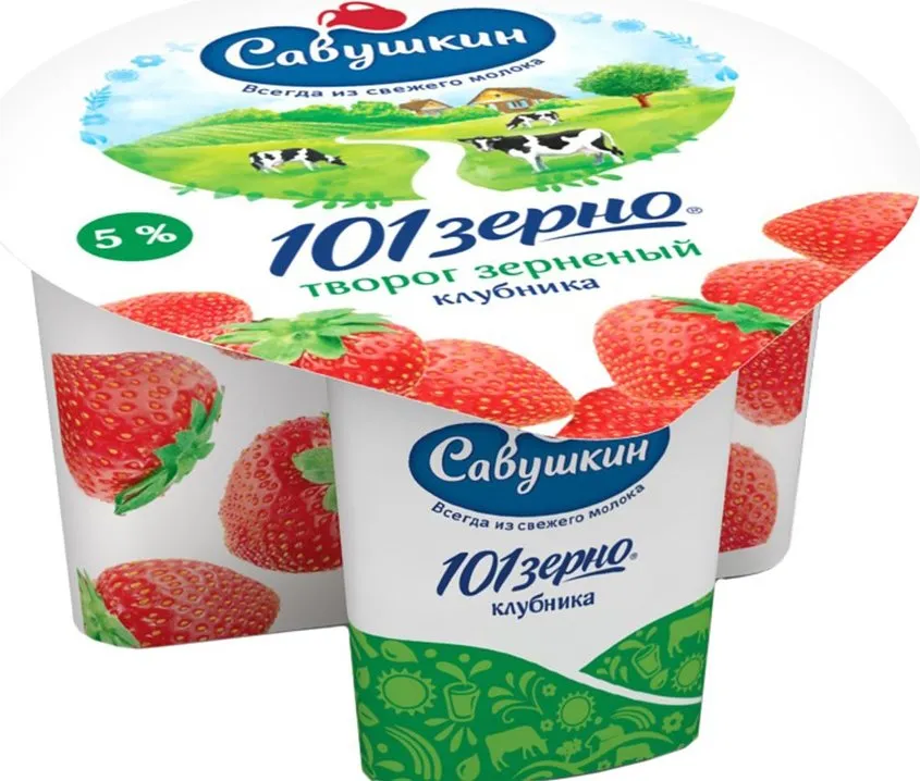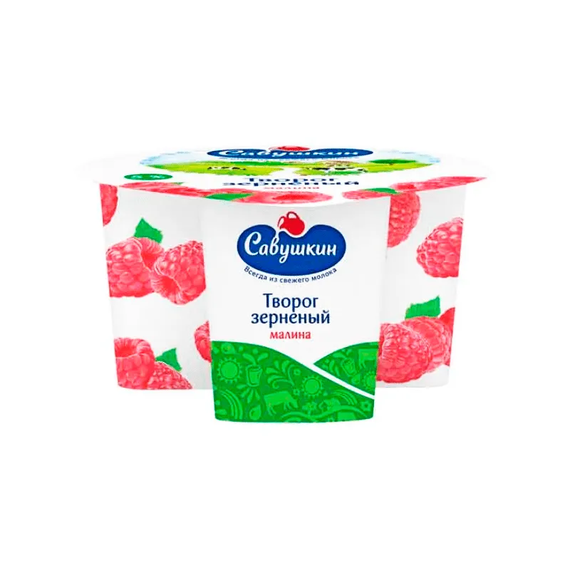 - Творог 101зерно+сливки 5% Малина 130г Савушкин продукт
