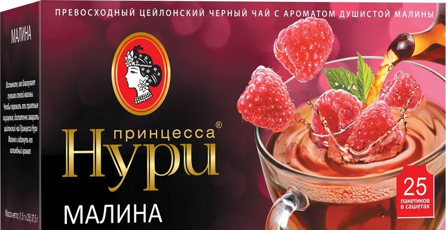 Чай черный с ароматом малины Принцесса Нури 25 пакетиков
