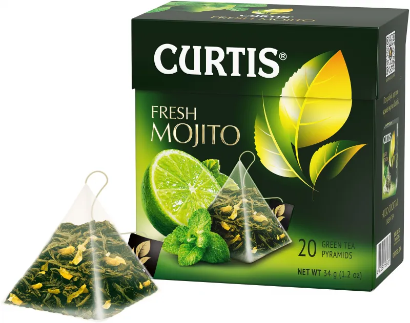 Зеленый чай Curtis "Свежий Мохито" - новинка в линейке Curtis. Это отборный среднелистовой чай с цедрой цитрусовых, зелеными листьями мяты и лемонграссом, который при заваривании раскрывает освежающий вкус с ароматом популярного кубинского коктейля.