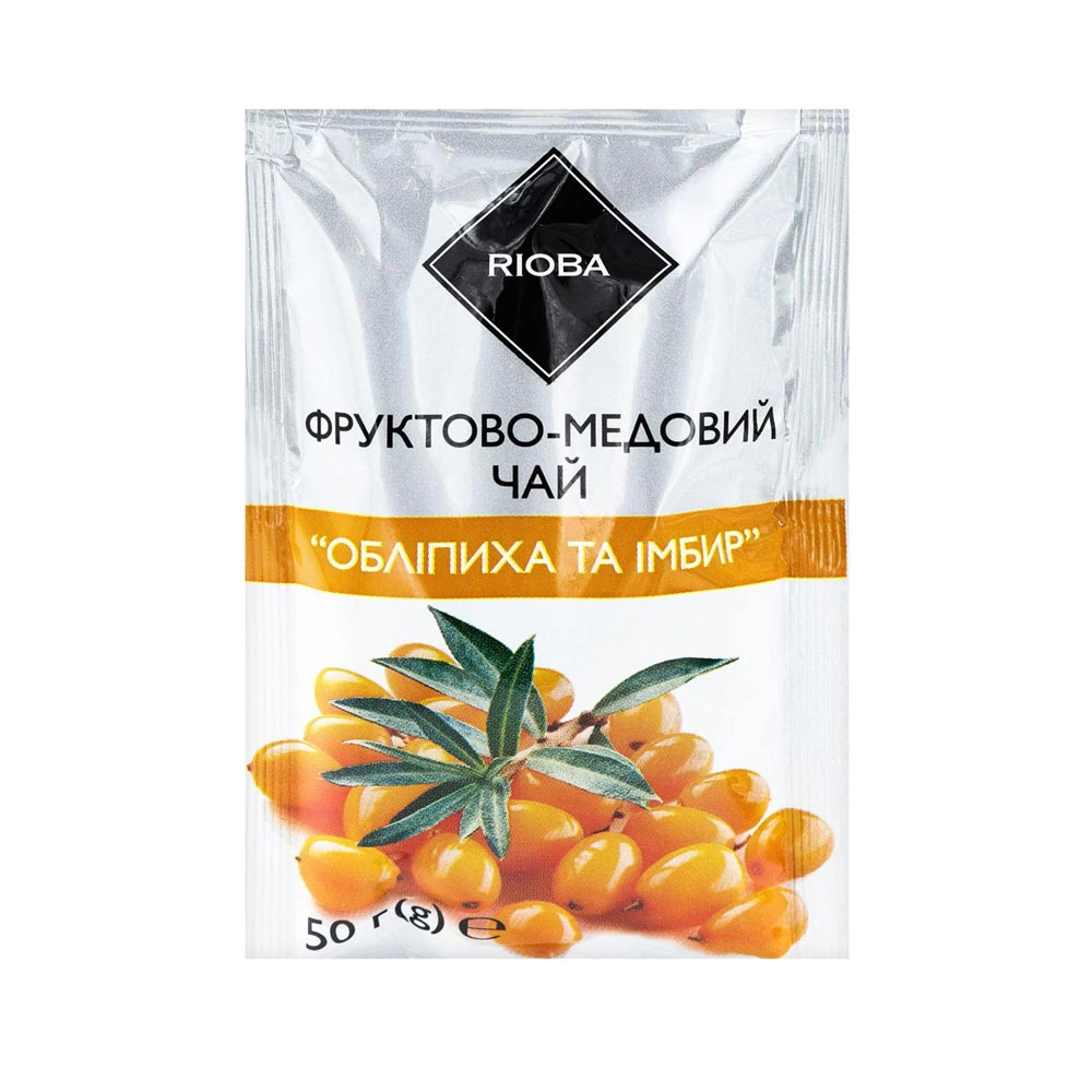 RIOBA – Фруктово-медовый чай «Облепиха и имбирь» (50 г) — яркая облепиха с лёгкой пикантностью имбиря; обычно без кофеина.