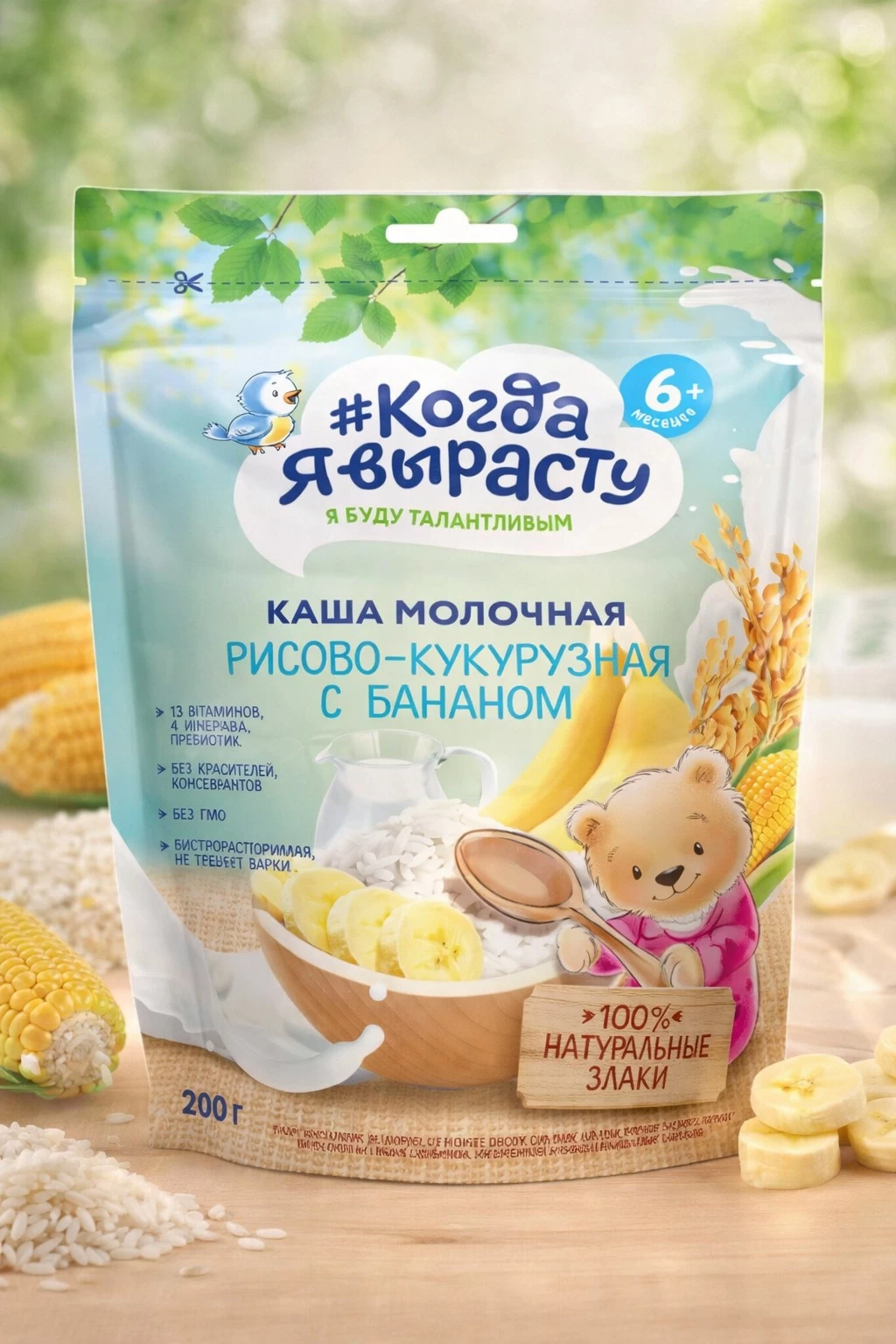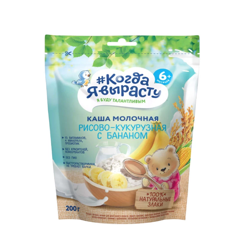 - Когда Я Вырасту Каша молочная рисово, кукурузная с бананом (6м+) 200 гр.