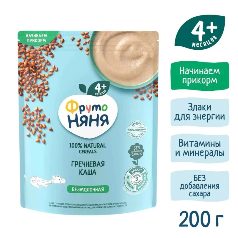 - ФрутоНяня Каша гречневая без молока (4+ мес), 200г
