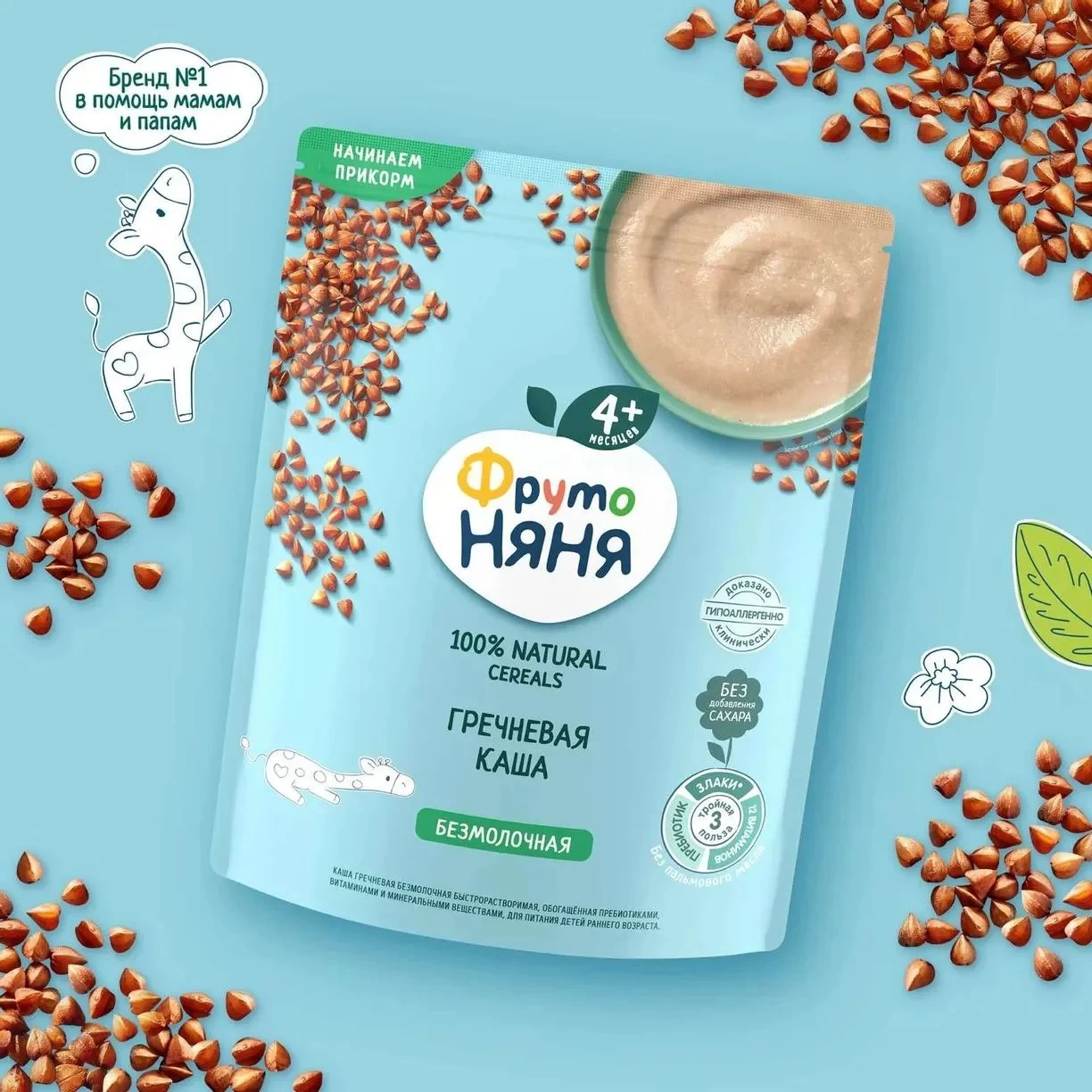 Первый прикорм… Что может быть более волнующе для мамы и папы? В этот момент вам просто необходим эксперт, на которого можно положиться! Клинически доказано в ФГАУ «НМИЦ Здоровья Детей» Минздрава России в 2019 г., что безмолочная гречневая каша ФрутоНяня гипоаллергенна.