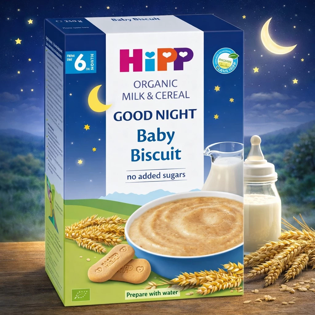 Органическая молочная каша HiPP с печеньем Спокойной ночи.