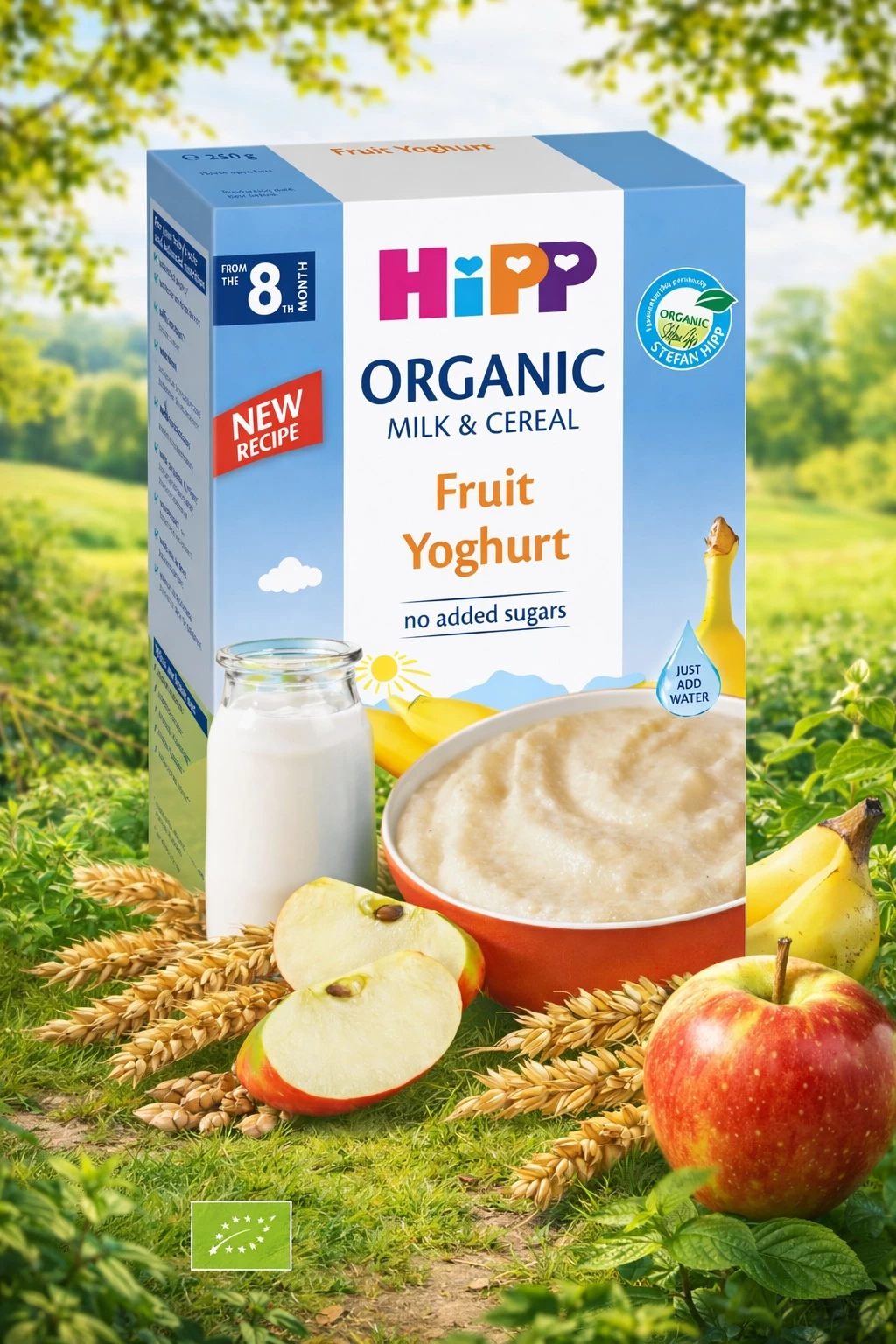 - HiPP Молочная пшеничная каша Фрукты-Йогурт с пробиотиками (8+ мес.), 250 г