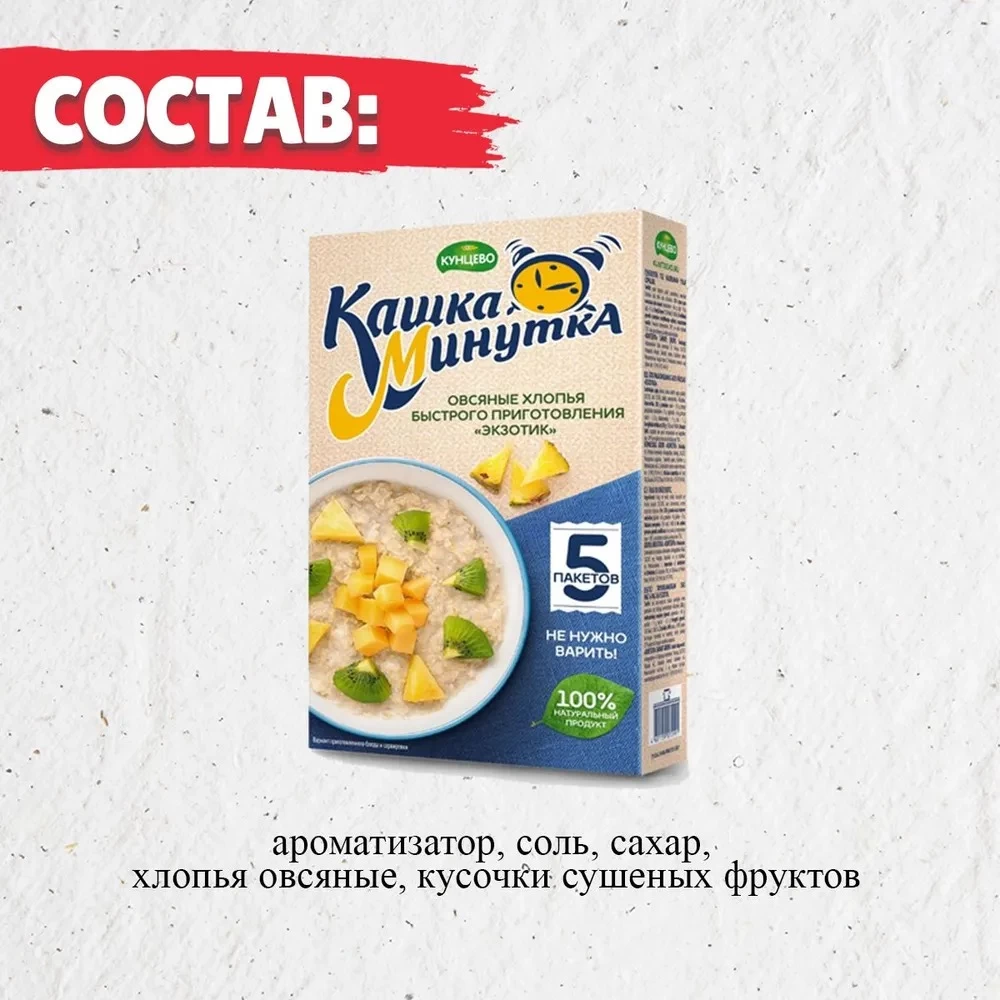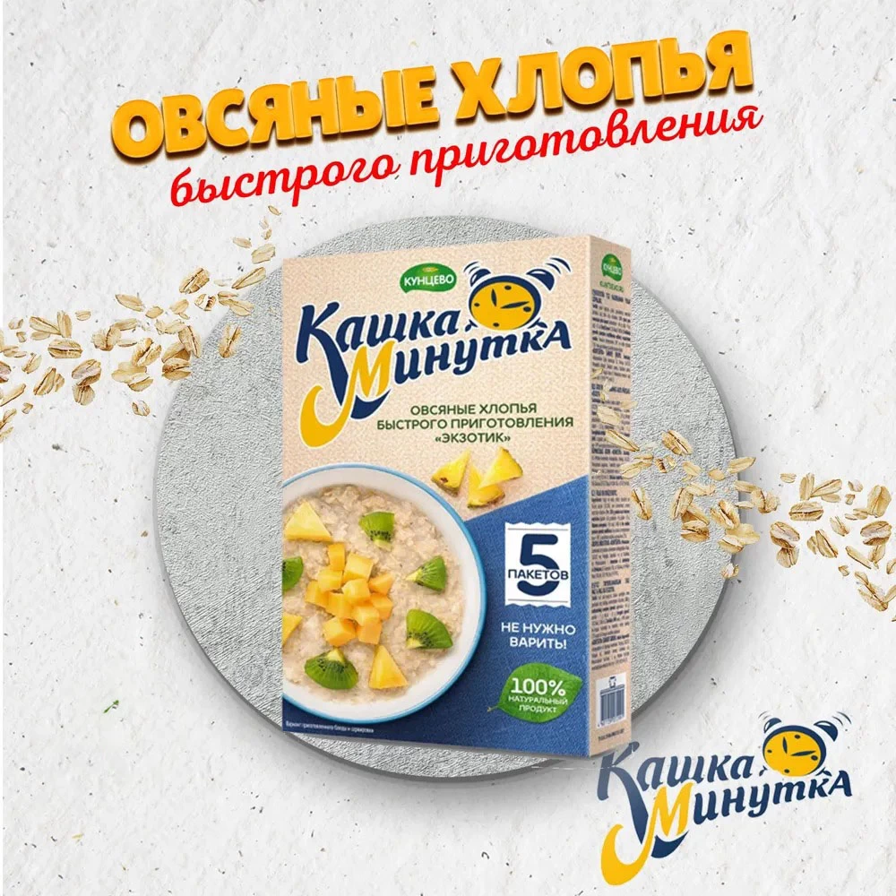 Хлопья овсяные быстрого приготовления “Кашка-Минутка” сэкономят не только Ваше время, но и добавят сил и энергию прекрасным утром. Вкусы в удобных порционных пакетах. Просто добавьте горячего молока или воды!