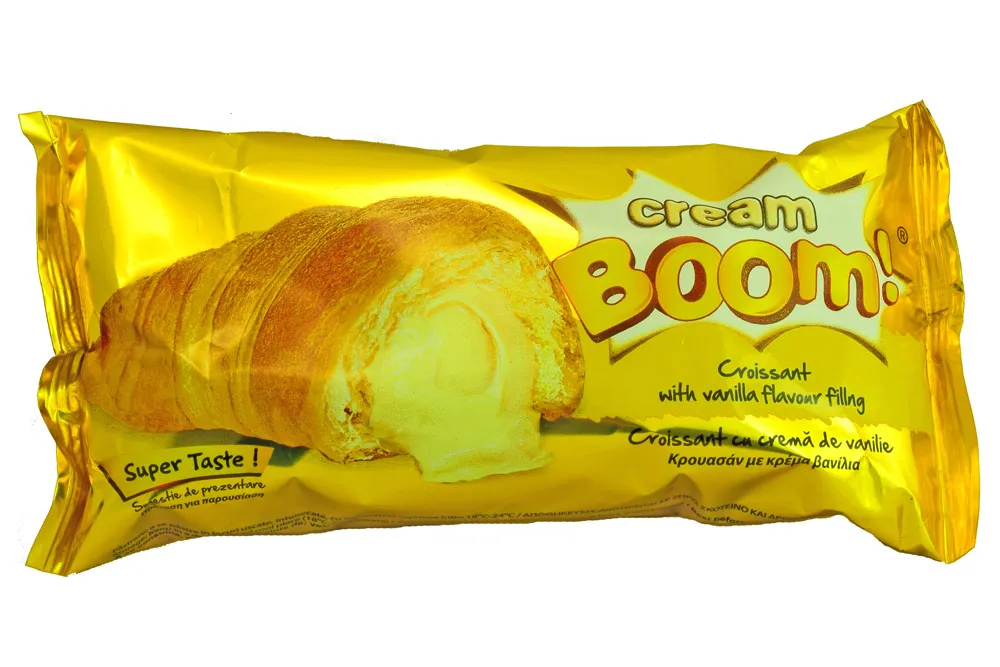 Круассан с ванильным кремом отличается насыщенным вкусом какао, дополняющим вкус пушистого мякиша.