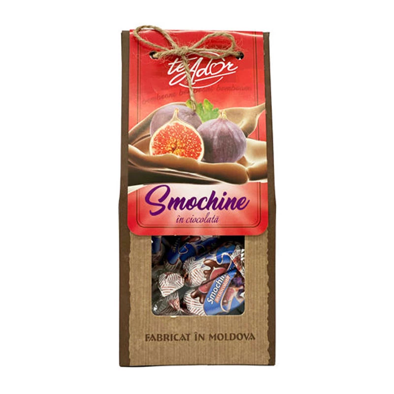 Конфеты с кусочками сушёного инжира, покрытыми шоколадной глазурью. Подарочная упаковка. Сделано в Молдове.