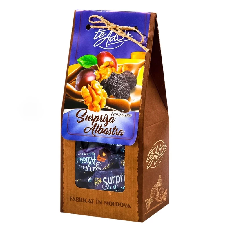 Конфеты-пралине с черносливом и грецким орехом, в шоколадной глазури. Подарочная упаковка, Сделано в Молдове.