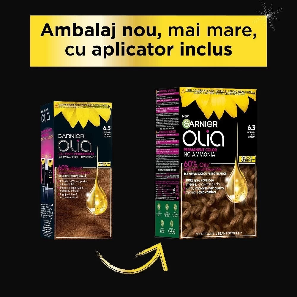 Garnier Olia 6.3 Golden Light Brown Ammonia-Free Permanent Hair Colour - Теплый и сияющий темно-золотистый блондин, 174 мл