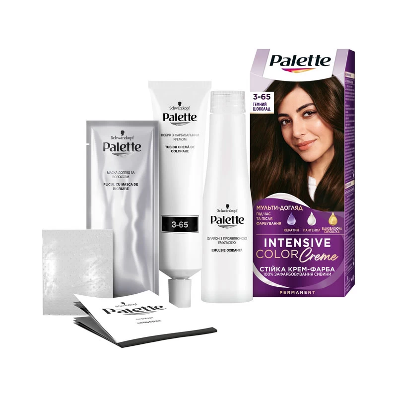 Стойкая крем-краска Palette Intensive Color Crème Интенсивный цвет надежно закрашивает седину, оставляя волосы здоровыми и ухоженными. Разработано специально для женщин, которые хотят получить насыщенный и стойкий цвет волос. Уверенная в цвете – уверенная в себе.