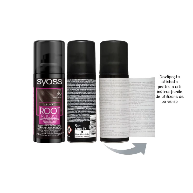 SYOSS ROOT RETOUCHER Черный тонирующий спрей для закрашивания отросших корней волос и седины.Мельчайшие частицы окрашивающего пигмента обволакивают каждый волос для мгновенной маскировки отросших корней волос и седины. - Мгновенно закрашивает отросшие корни и седину- Быстро высыхает- Смывается после одного применения шампуня- До 25 примененийТонирующий спрей Черный подходит для оттенков волос от тёмно-каштанового до черного.Быстро высыхает и гармонично принимает цвет основной длины волос, обеспечивая равномерный результат. Точное распыление позволяет нанести продукт непосредственно на отросшие корни волос. Результат держится до следующего мытья головы.Способ применения:Тщательно взболтайте флакон перед применением. Накройте плечи полотенцем. Распыляйте продукт вертикально на расстоянии 10 см. Мягким нажатием распылите на сухие корни волос тонким слоем. Подходит для ежедневного применения между окрашиваниями. Если продукт окрасил кожу или другие поверхности, удалите пятна при помощи мыла.