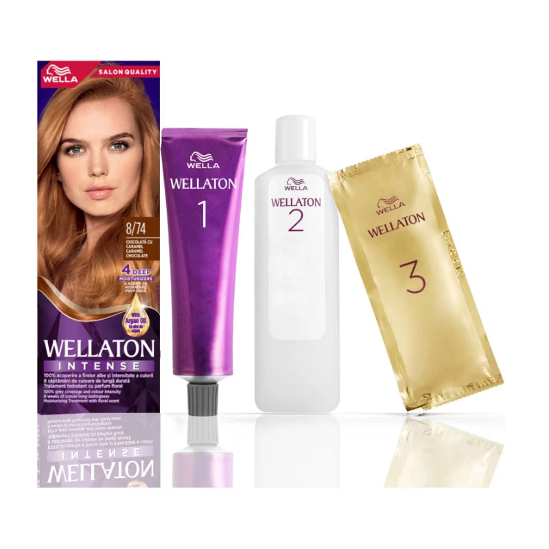 - Стойкая краска для волос Wellaton Шоколад с карамелью 8/74, 110 мл