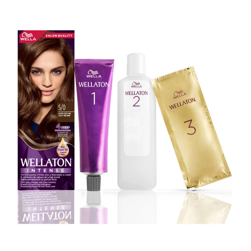 - Стойкая краска для волос Wellaton Светлый каштан 5/0, 110 мл