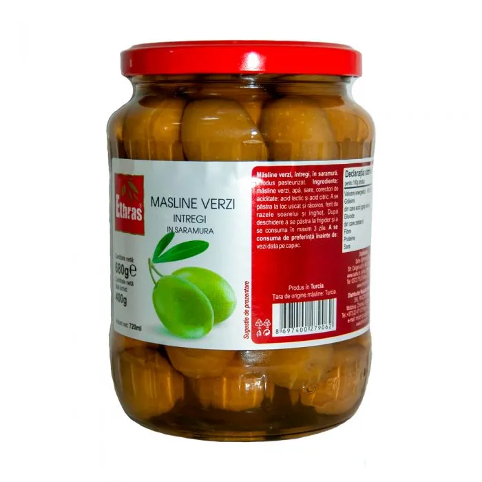 Зеленые оливки с косточкой ETHRAS 680 гр